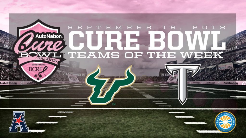 ORLANDO, Fla. (OrlandoSportsFoundation.com) – South Florida and Troy were tabbed as the Cure Bowl Teams of the Week following the third week of the college football season on Wednesday. South Florida posted a 25-19 victory at Illinois, while Troy notched a 24-19 win on the road at Nebraska.