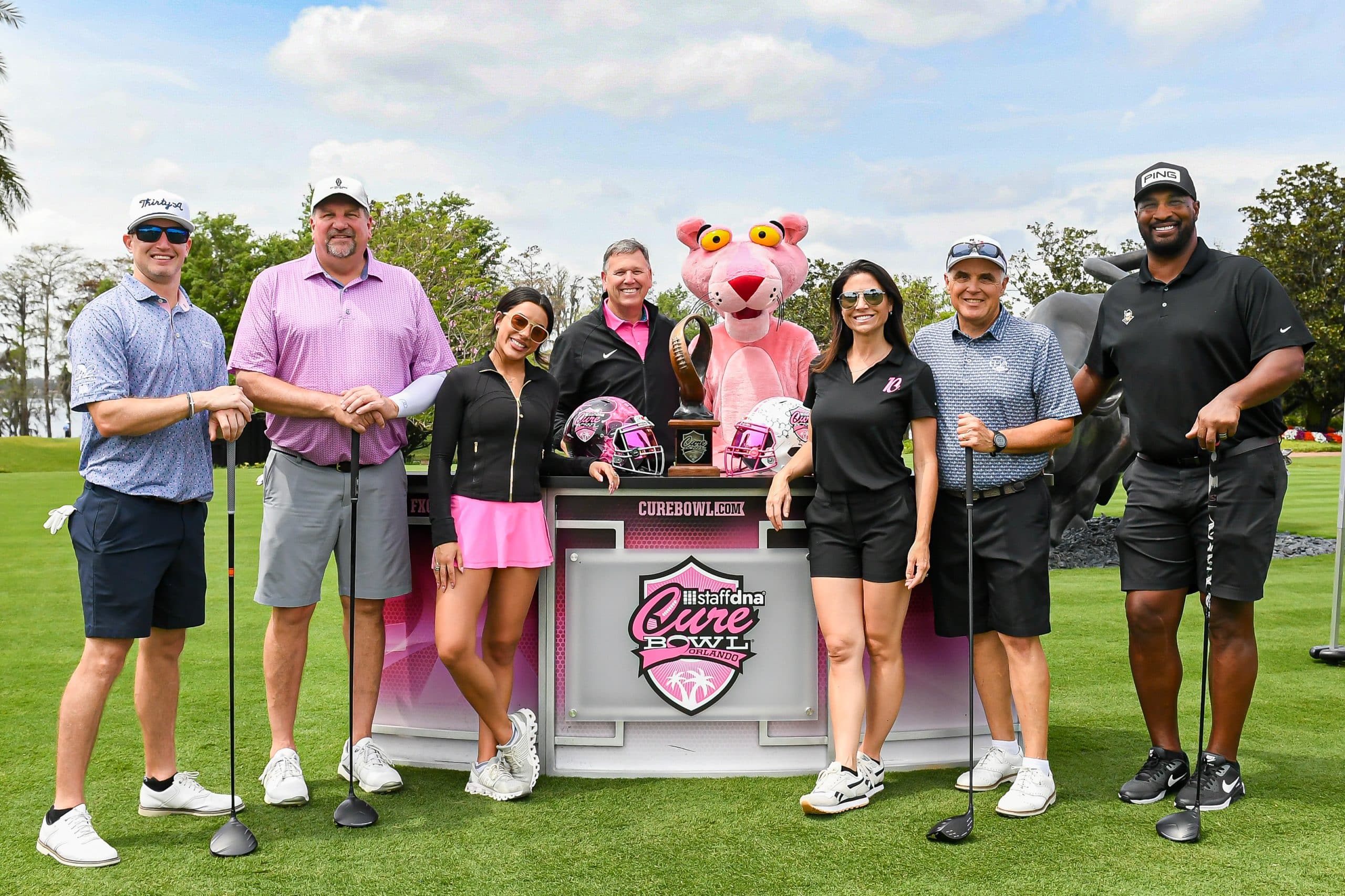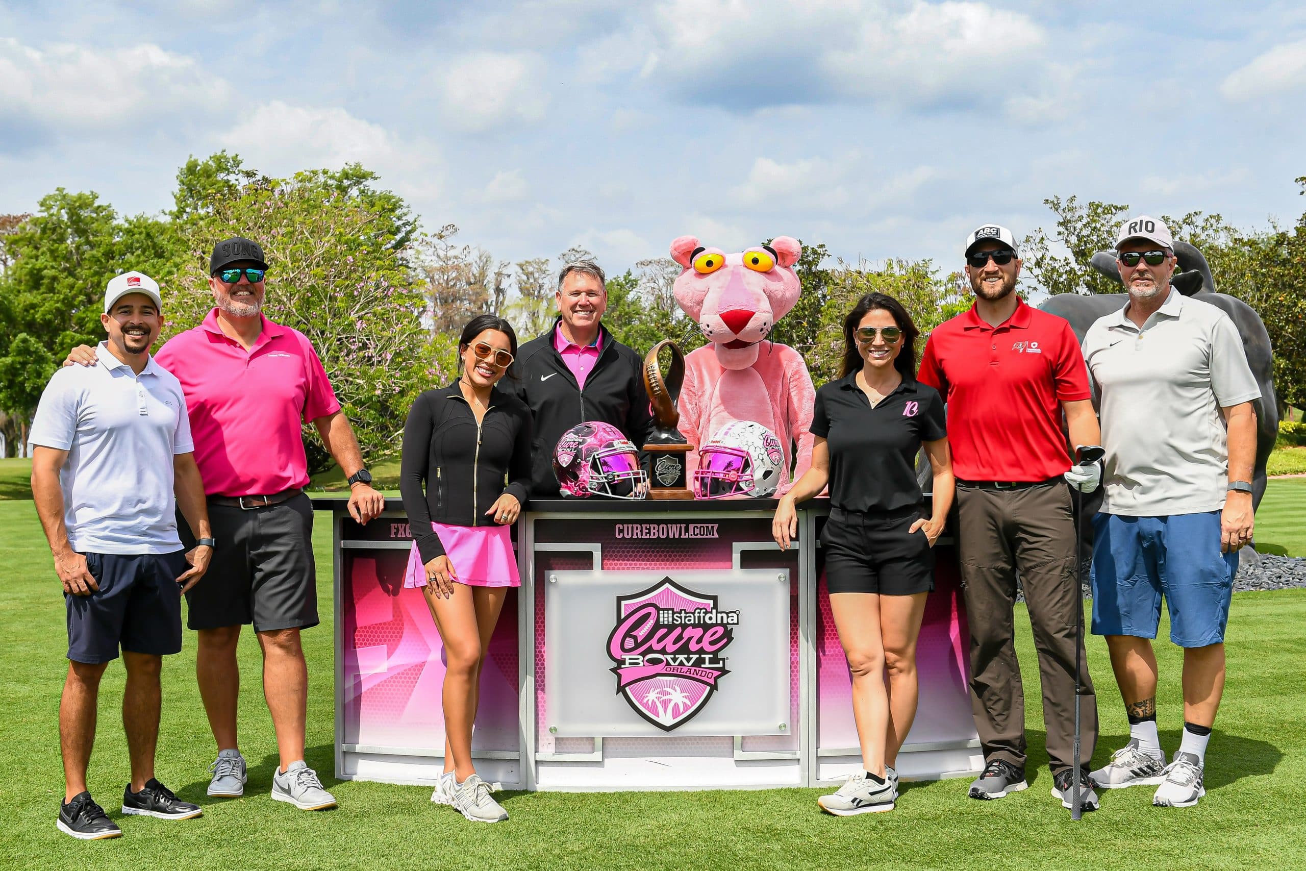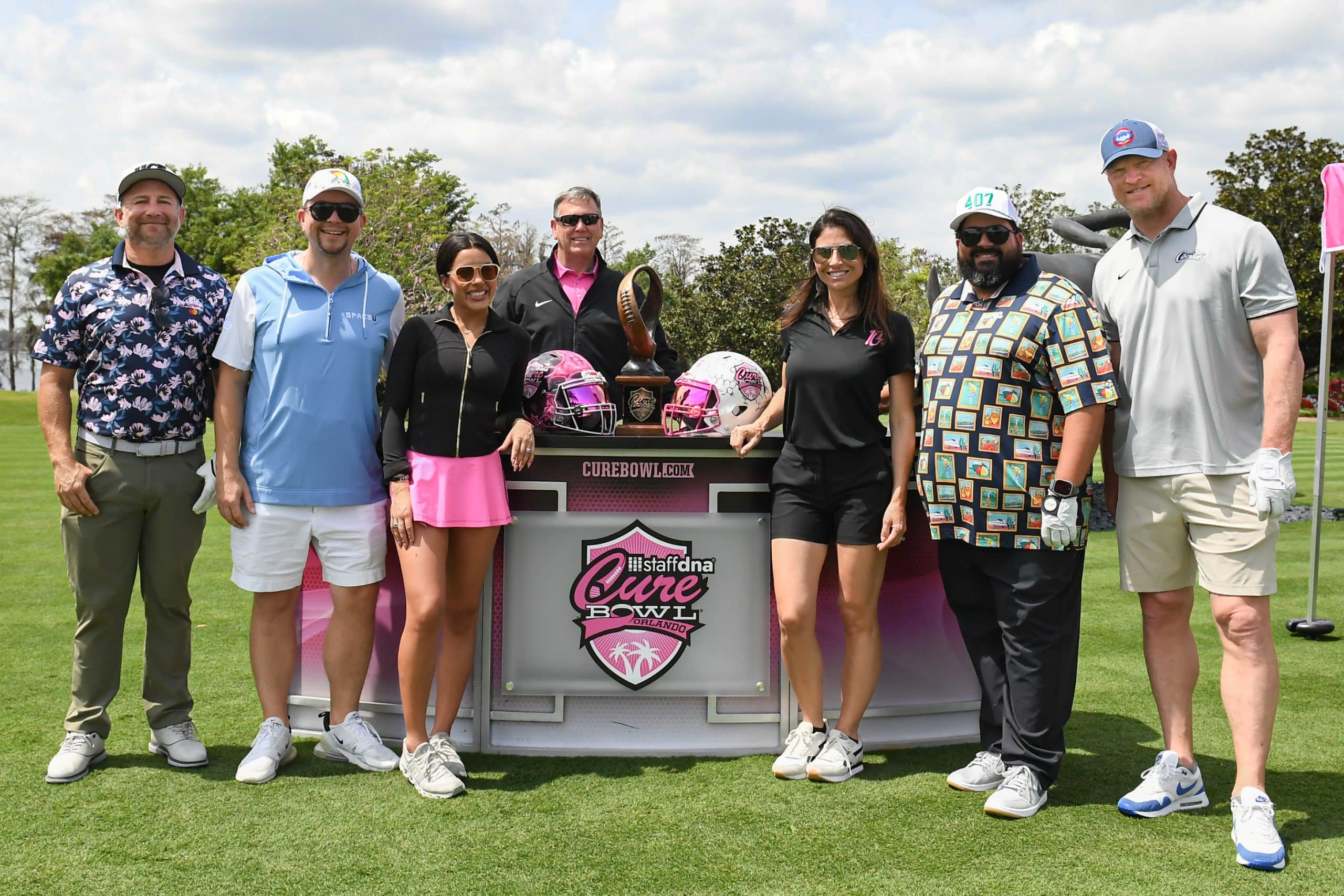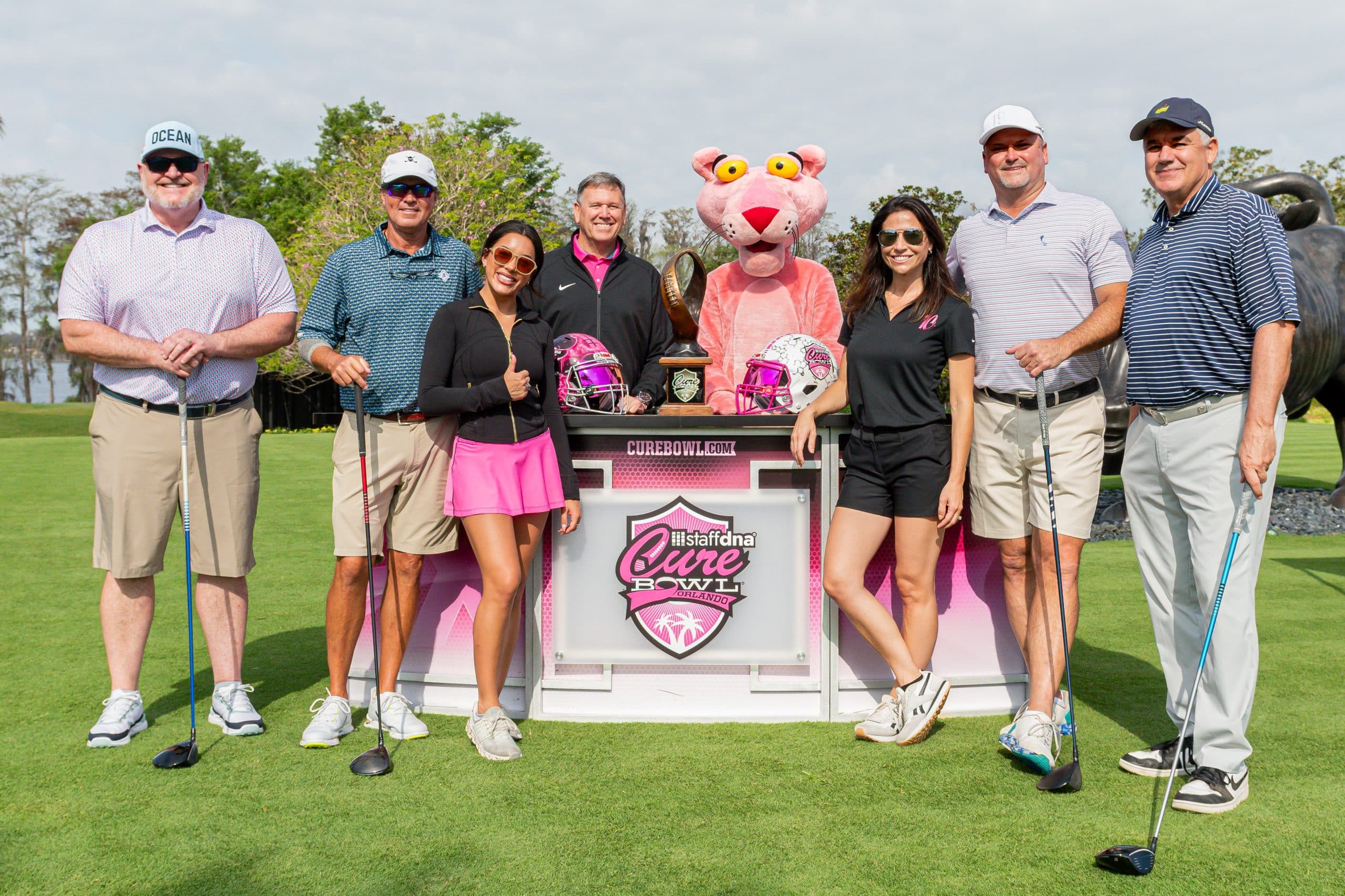 Before tee-off, golfers heard inspiring words from Mayor Jerry Demings, WKMG Sports Anchor Jamie Seh, and Dr. Annette Khaled of UCF’s College of Medicine. The course was packed with challenges like Beat the Pro, Long Drive, Closest to the Pin, raffle prizes, and even a Million-Dollar Shot contest. Winners took home prizes including a Scales golf bag, a foursome at Isleworth, and a Bettinardi putter — with the champion foursome of Ted Coltrain, Mike Dickinson, Patrick McRae, and John McRae earning the signature pink Cure Cup jackets. Special guests included Jenny Dell, Will Middlebrooks, Daunte Culpepper, Terry Mohajir, Scott Frost, and more. Every dollar raised supported cancer research at the UCF College of Medicine Cancer Research Center.