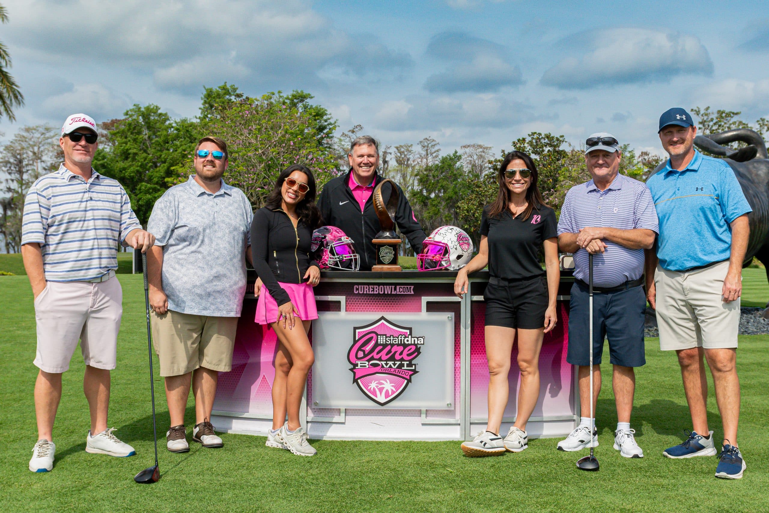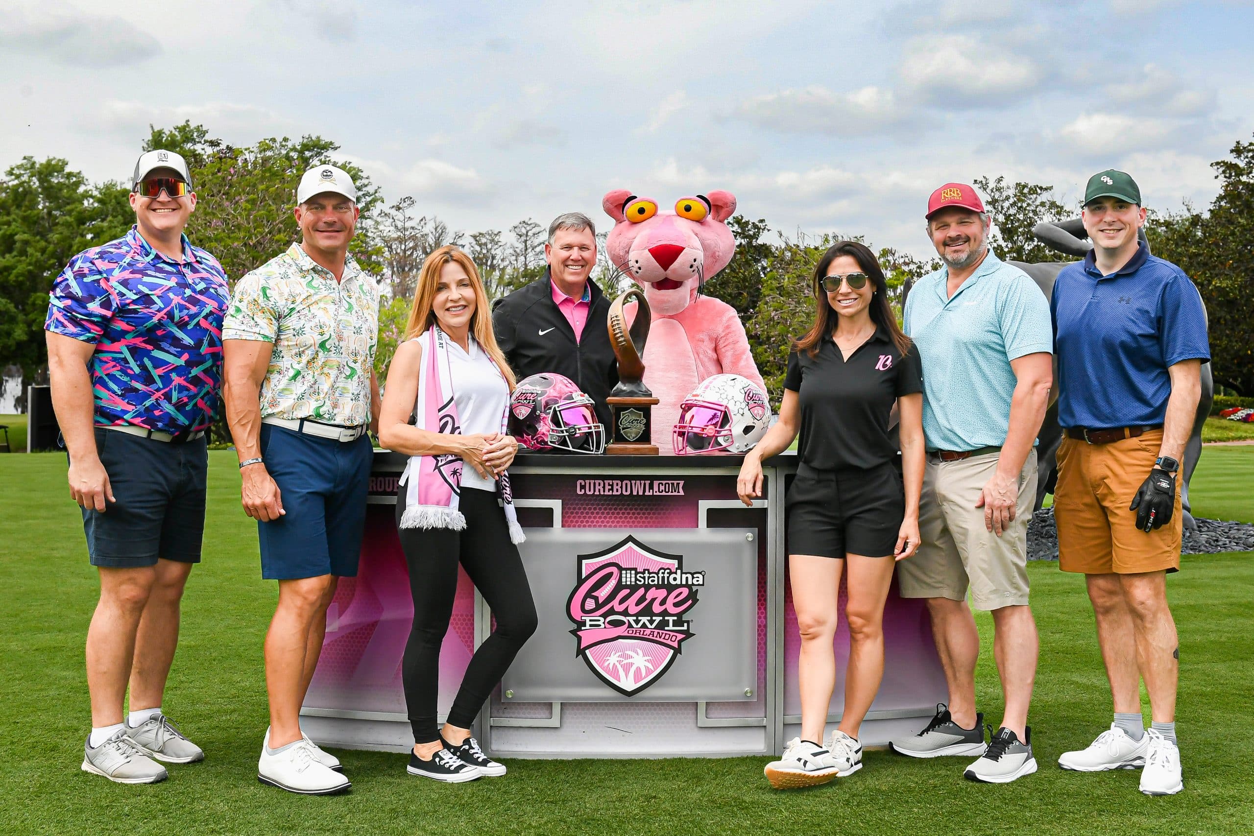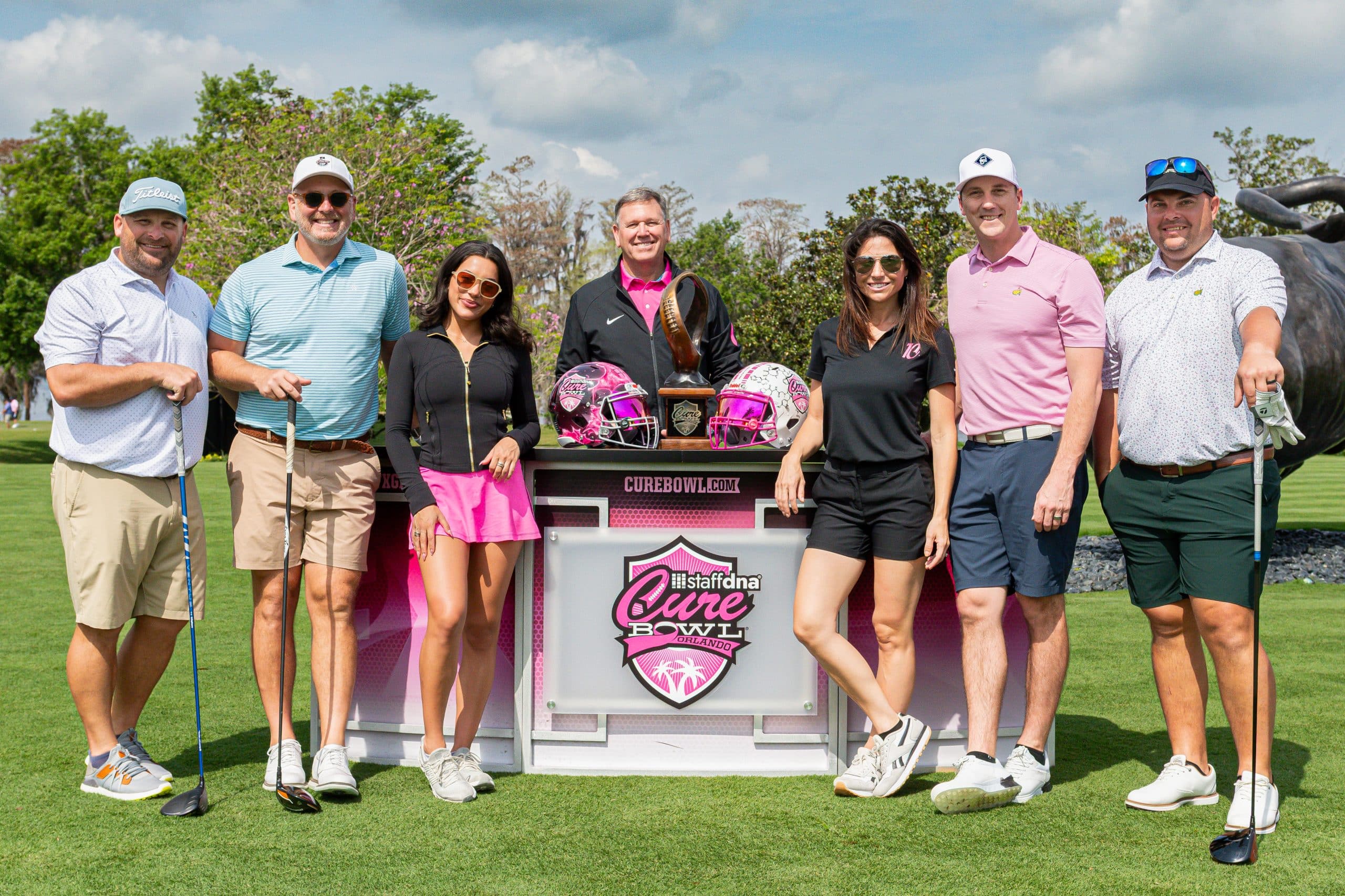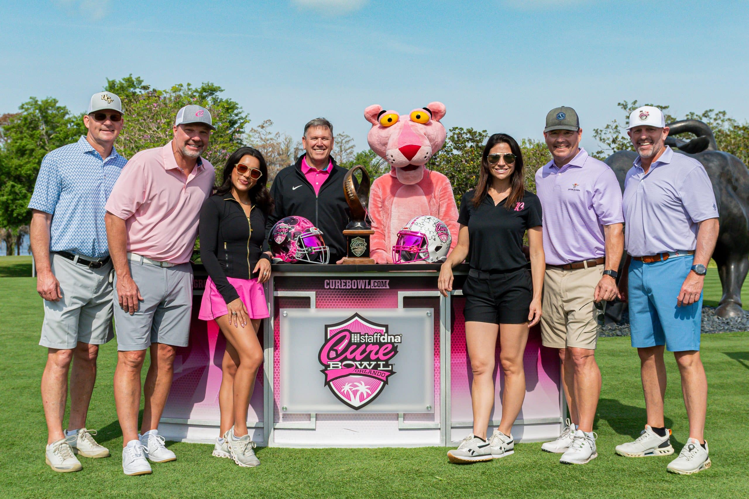 Before tee-off, golfers heard inspiring words from Mayor Jerry Demings, WKMG Sports Anchor Jamie Seh, and Dr. Annette Khaled of UCF’s College of Medicine. The course was packed with challenges like Beat the Pro, Long Drive, Closest to the Pin, raffle prizes, and even a Million-Dollar Shot contest. Winners took home prizes including a Scales golf bag, a foursome at Isleworth, and a Bettinardi putter — with the champion foursome of Ted Coltrain, Mike Dickinson, Patrick McRae, and John McRae earning the signature pink Cure Cup jackets. Special guests included Jenny Dell, Will Middlebrooks, Daunte Culpepper, Terry Mohajir, Scott Frost, and more. Every dollar raised supported cancer research at the UCF College of Medicine Cancer Research Center.