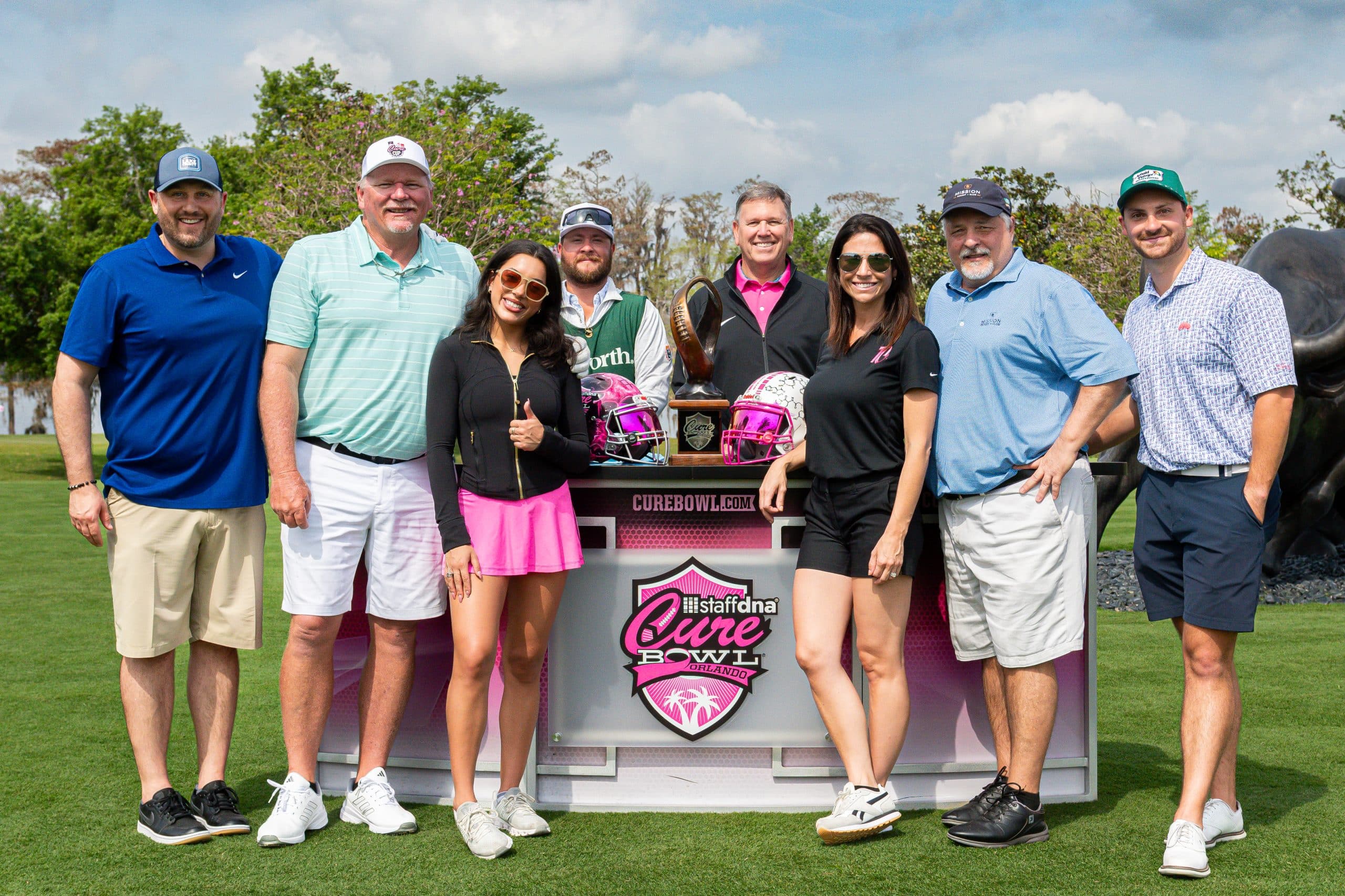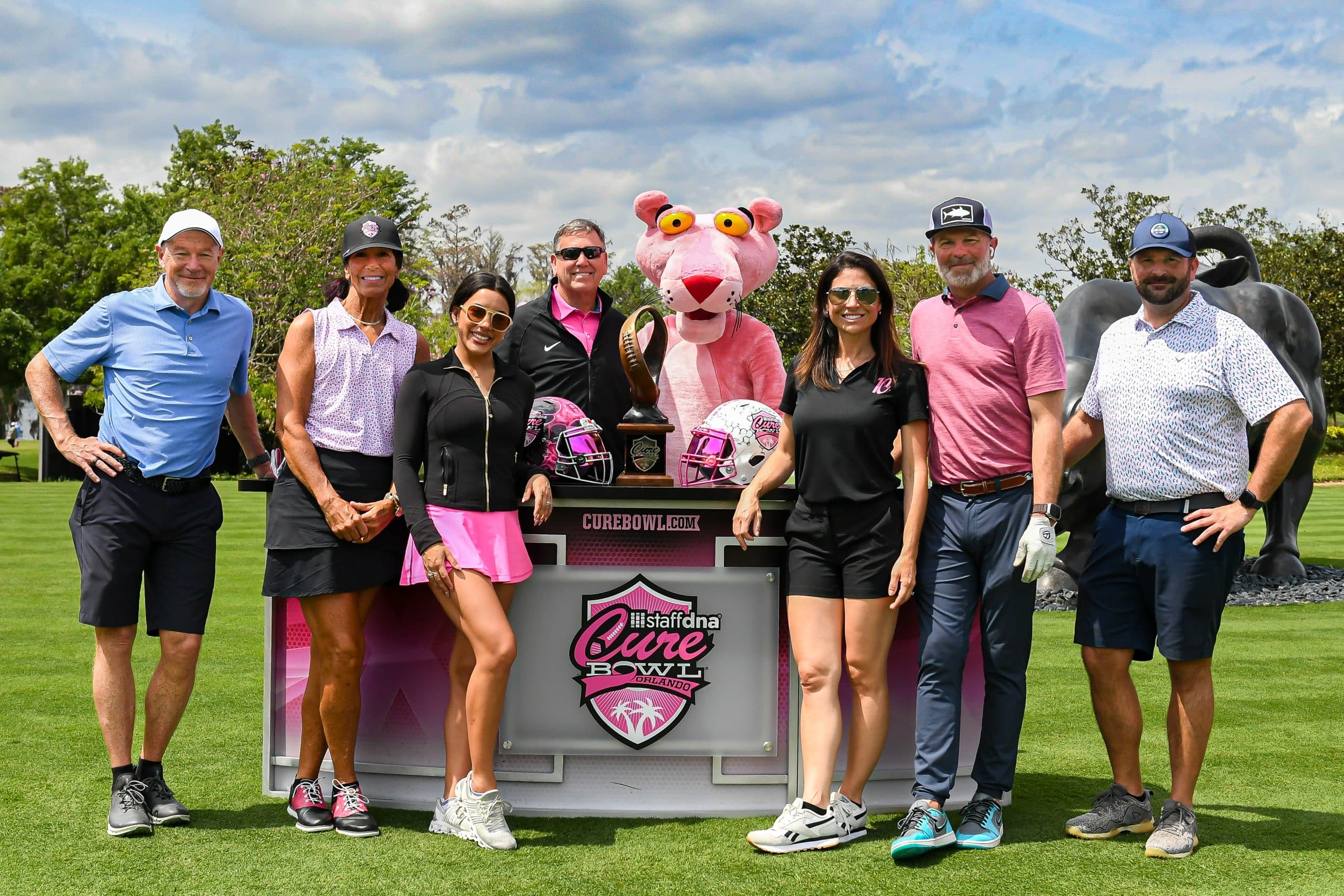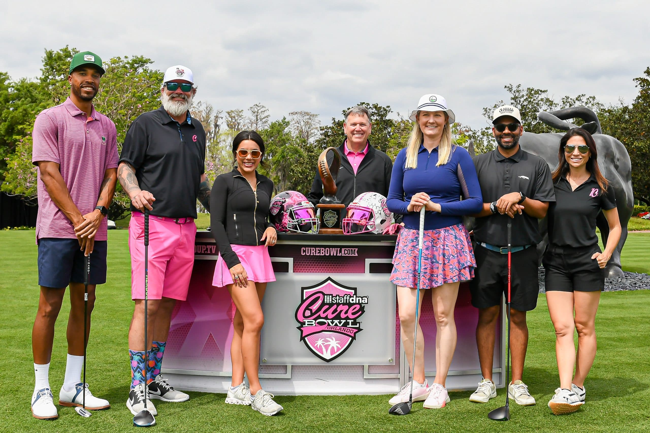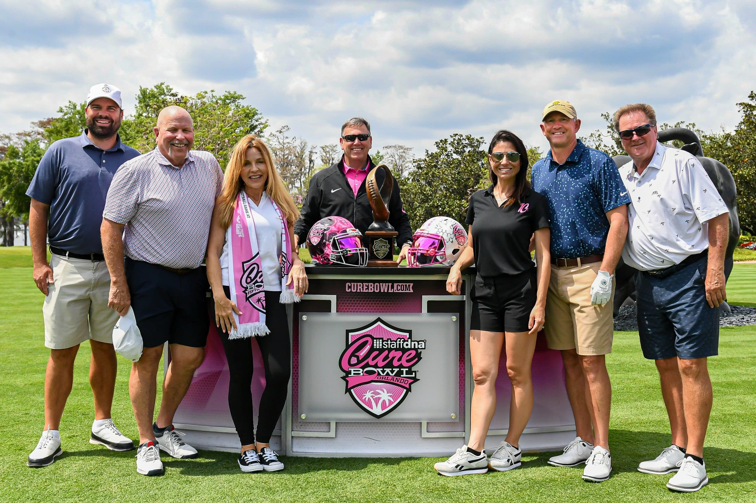 Before tee-off, golfers heard inspiring words from Mayor Jerry Demings, WKMG Sports Anchor Jamie Seh, and Dr. Annette Khaled of UCF’s College of Medicine. The course was packed with challenges like Beat the Pro, Long Drive, Closest to the Pin, raffle prizes, and even a Million-Dollar Shot contest. Winners took home prizes including a Scales golf bag, a foursome at Isleworth, and a Bettinardi putter — with the champion foursome of Ted Coltrain, Mike Dickinson, Patrick McRae, and John McRae earning the signature pink Cure Cup jackets. Special guests included Jenny Dell, Will Middlebrooks, Daunte Culpepper, Terry Mohajir, Scott Frost, and more. Every dollar raised supported cancer research at the UCF College of Medicine Cancer Research Center.