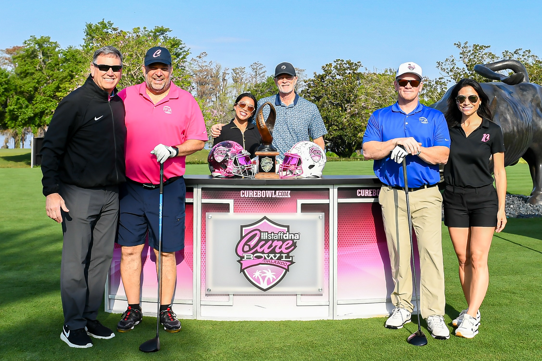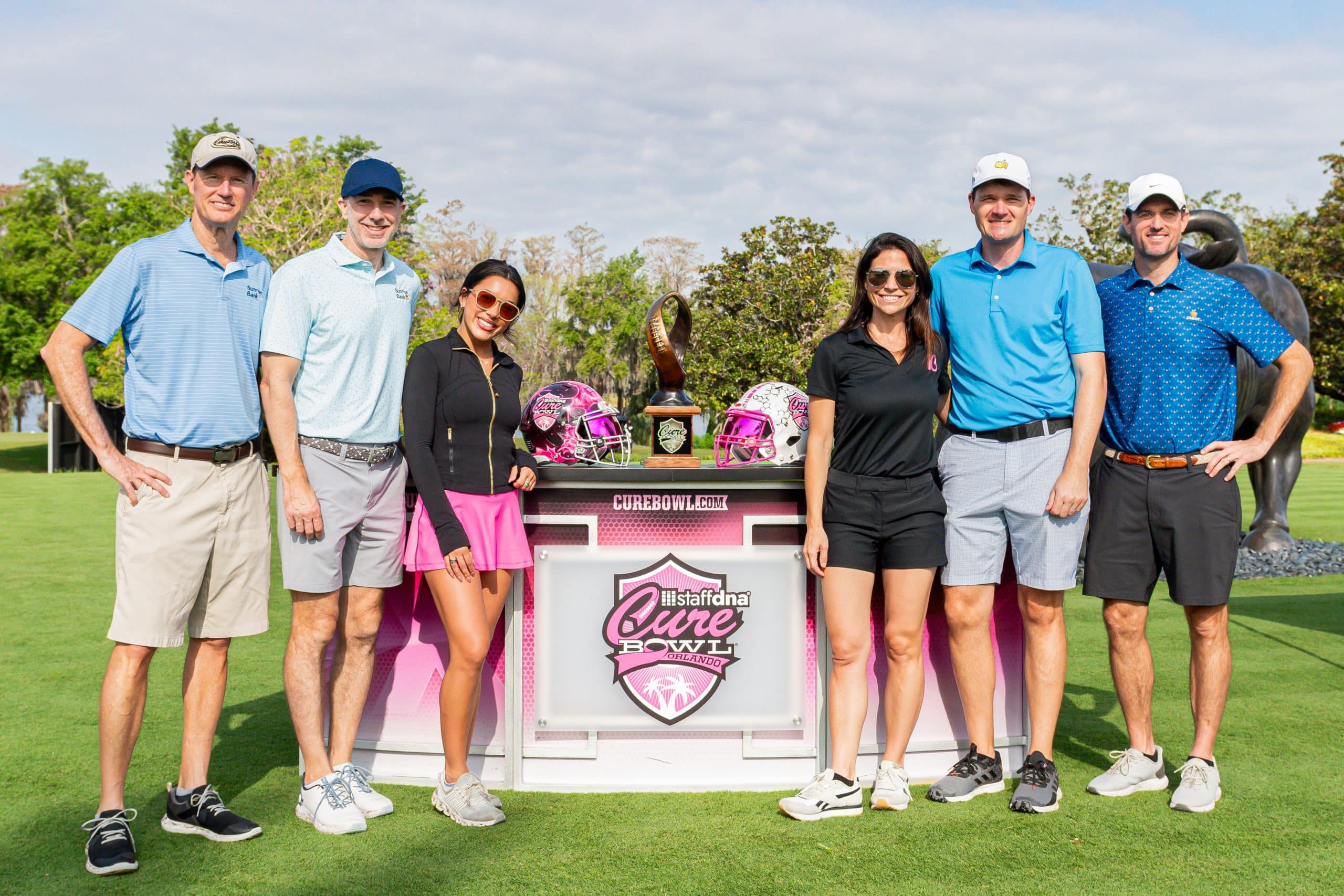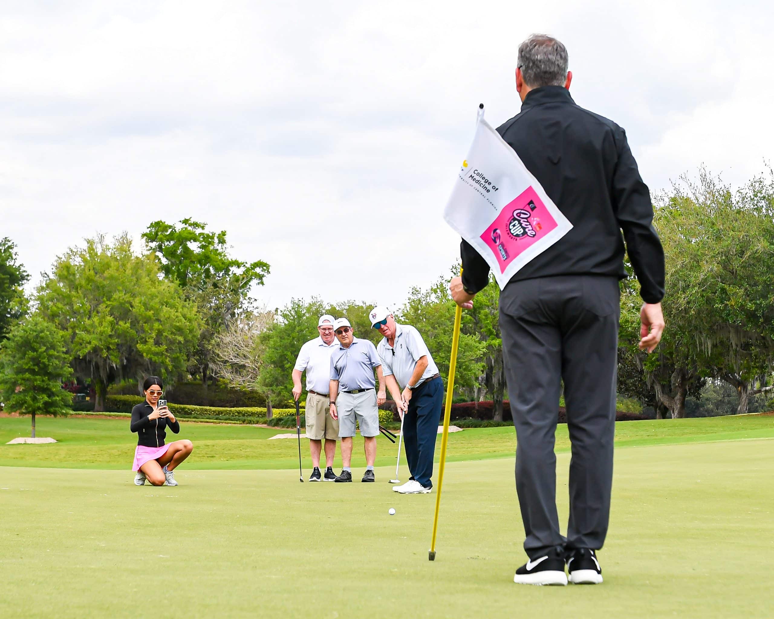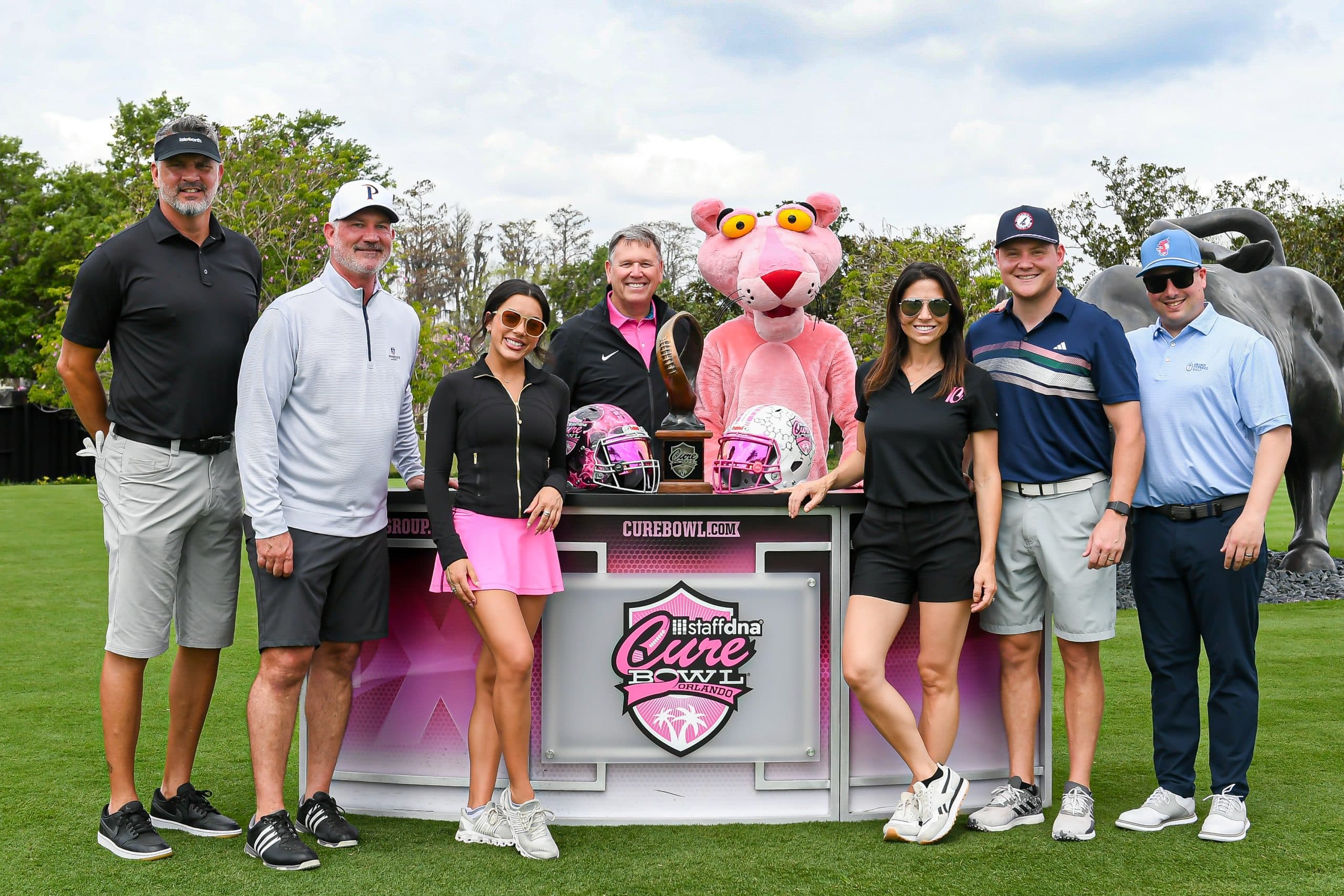 Before tee-off, golfers heard inspiring words from Mayor Jerry Demings, WKMG Sports Anchor Jamie Seh, and Dr. Annette Khaled of UCF’s College of Medicine. The course was packed with challenges like Beat the Pro, Long Drive, Closest to the Pin, raffle prizes, and even a Million-Dollar Shot contest. Winners took home prizes including a Scales golf bag, a foursome at Isleworth, and a Bettinardi putter — with the champion foursome of Ted Coltrain, Mike Dickinson, Patrick McRae, and John McRae earning the signature pink Cure Cup jackets. Special guests included Jenny Dell, Will Middlebrooks, Daunte Culpepper, Terry Mohajir, Scott Frost, and more. Every dollar raised supported cancer research at the UCF College of Medicine Cancer Research Center.